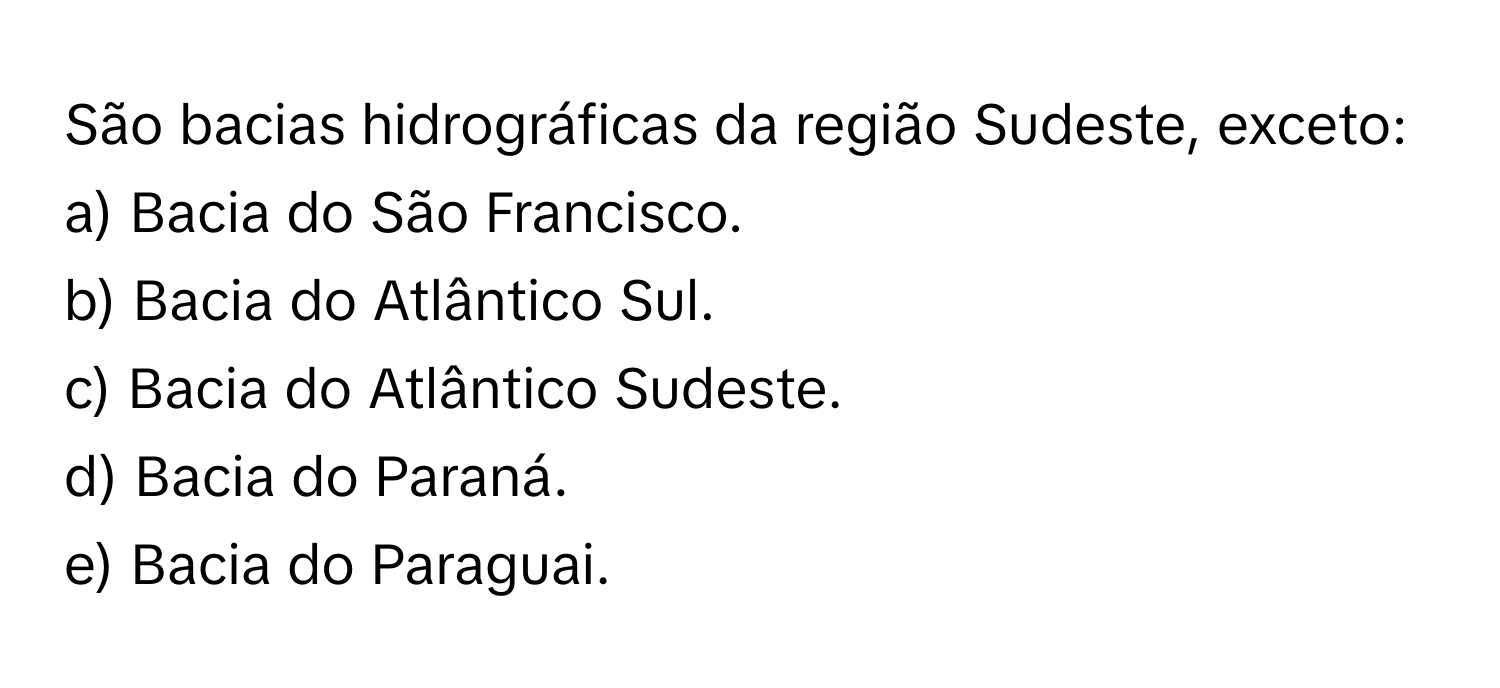 Cite Algumas Características Das Bacias Fluviais Da Região Sudeste