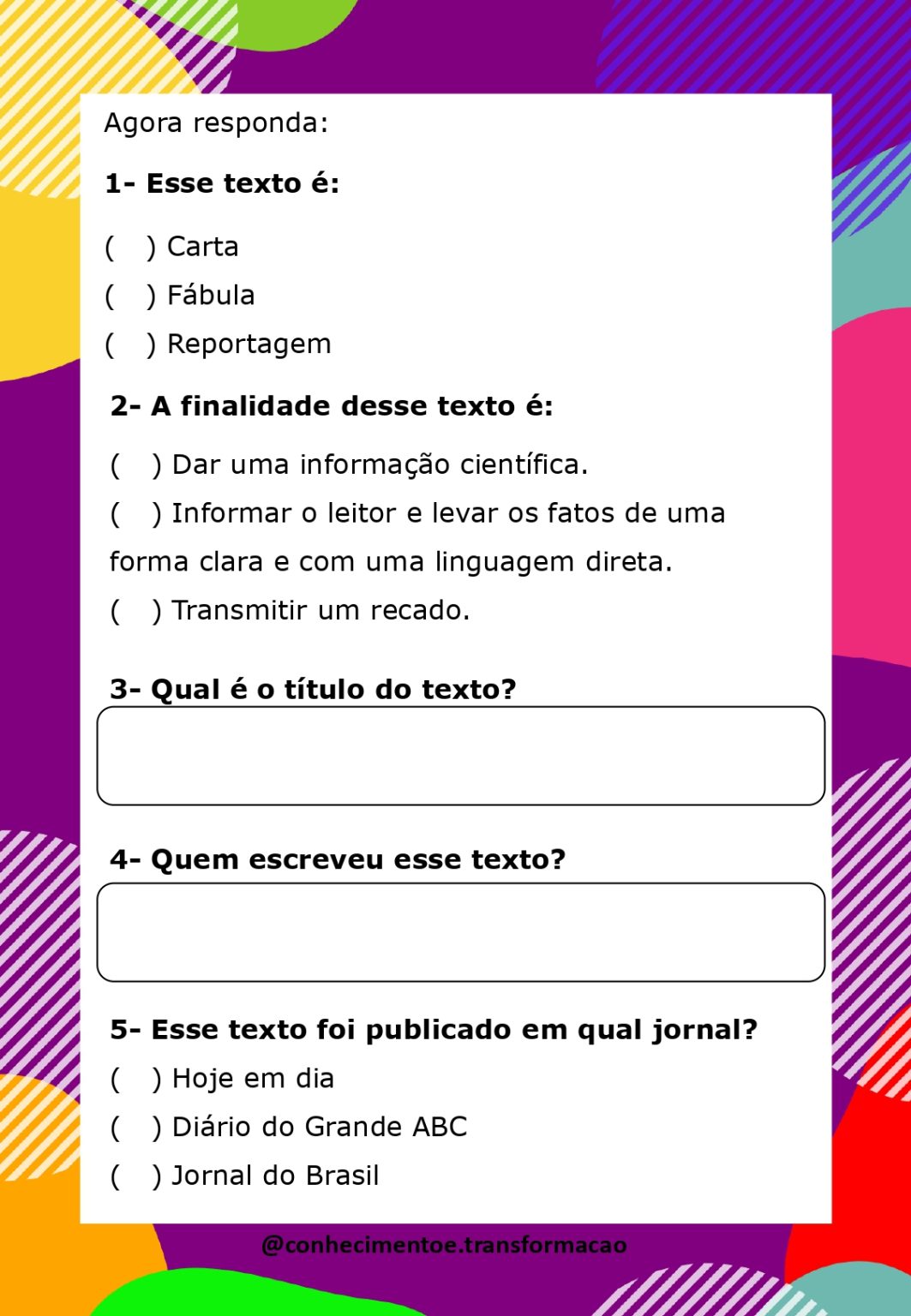 Gêneros Textuais Atividades De Interpretação De Texto 5 Ano - BINKEDU