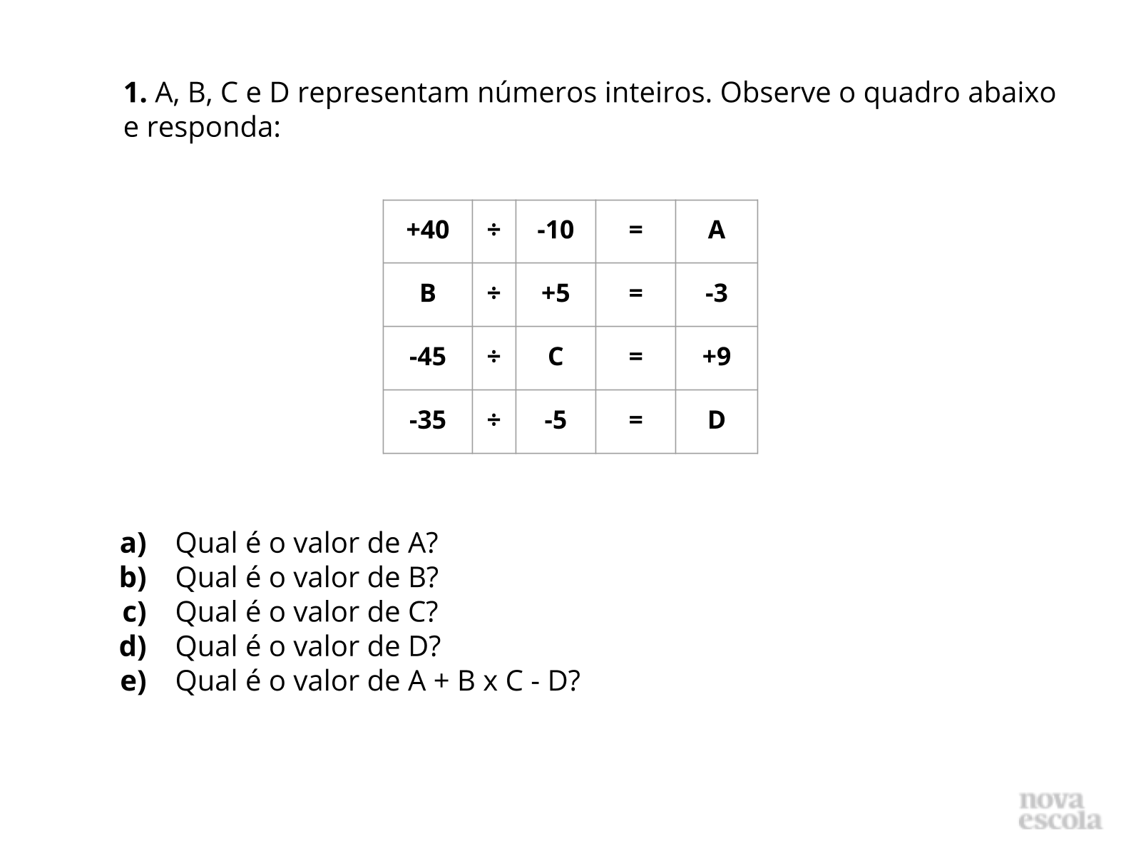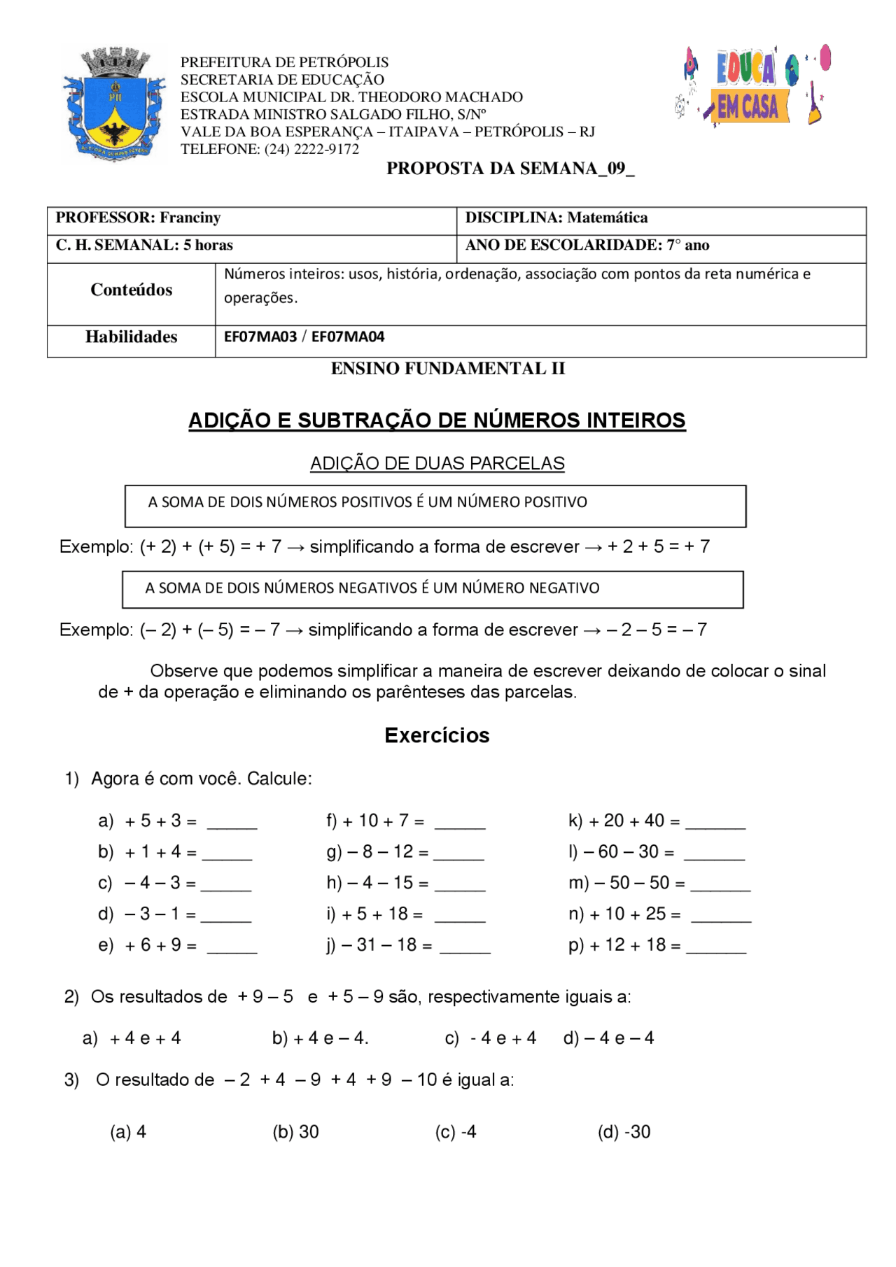 Exercícios Números Inteiros 7 Ano - REVOEDUCA