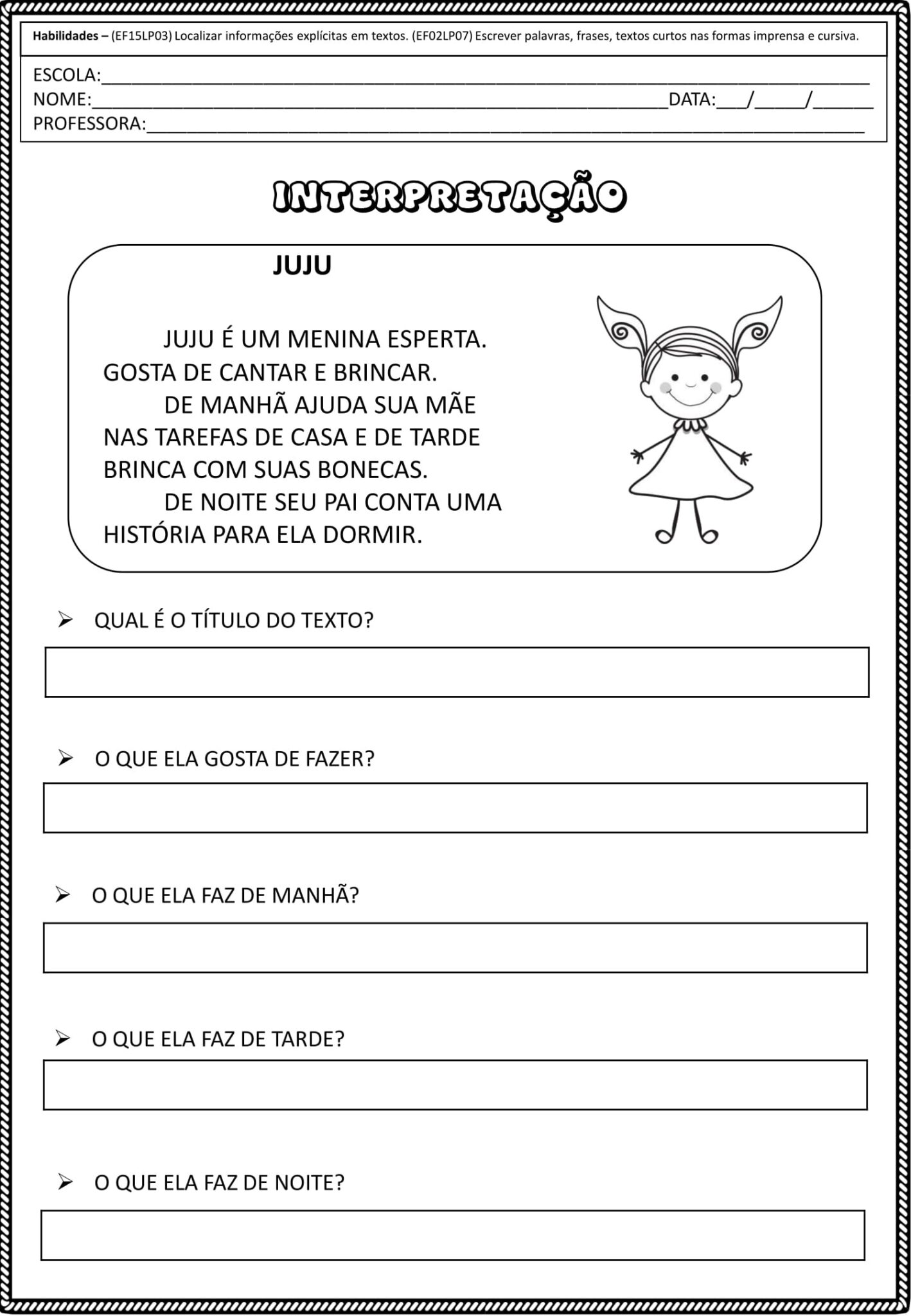 Pequenos Textos Para Alfabetização Com Interpretação 2 Ano